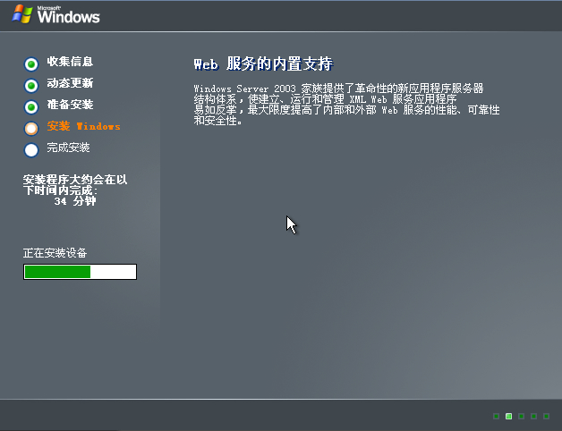 選擇格式化分區,然后等待完畢。會自動復制程序文件安裝。VULTR安裝WINDOWS系統還是比較快的,畢竟是SSD固態硬盤。