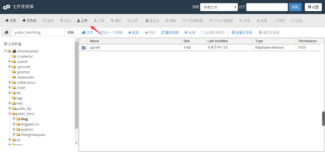這里的blog目錄就是我們blog.zhangchaoquan.com的根目錄,如果使用的是主域名那么默認的網站根目錄是public_html