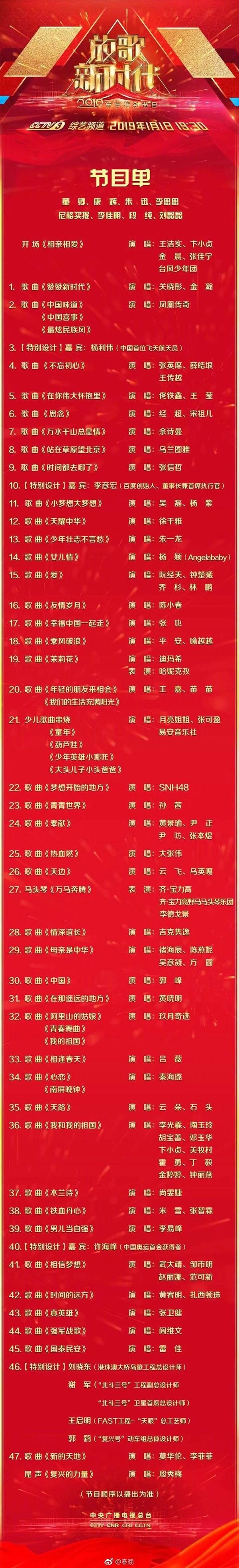 2019年央視元旦晚會節(jié)目單公布 百度創(chuàng)始人參加“特別設計”
