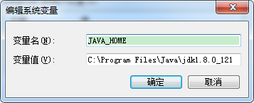 2. 配置JAVA_HOME。新建,變量名JAVA_HOME,變量值,jdk路徑,我的路徑是C:\Program Files\Java\jdk1.8.0_121,保存。