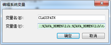 3. 配置CLASSPATH。新建,變量名CLASSPATH,變量值,.;%JAVA_HOME%\lib;%JAVA_HOME%\lib\tools.jar(第一個分號前前面有一個點)。