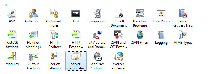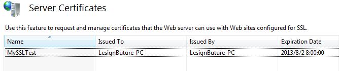 回到IIS,打開Server Certificates,發現證書已創建成功,如圖: