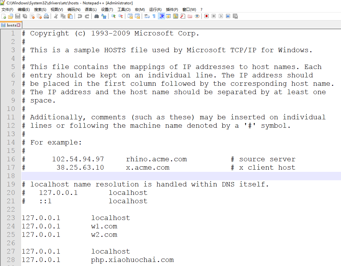 打開hosts,新加一條記錄:127.0.0.1 php.xiaohuochai.com
