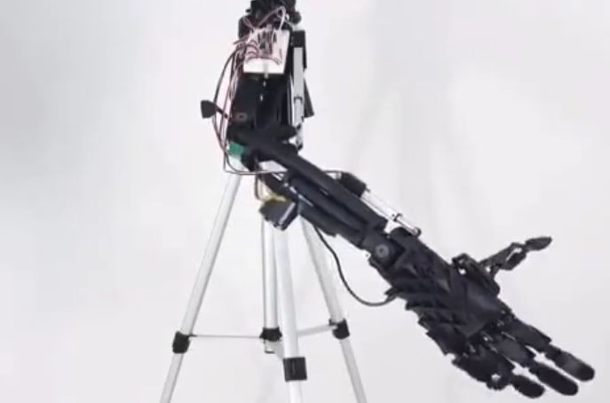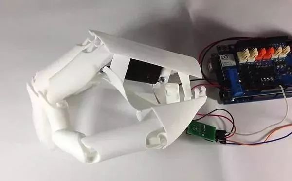 至于原理呢,機(jī)械手配備了一個(gè)Arduino微處理器、一組運(yùn)動(dòng)傳感器和三個(gè)電極。