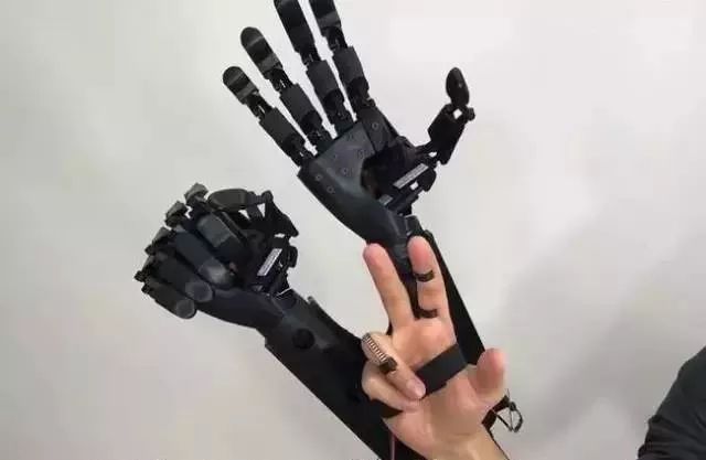 使用時(shí)需要將它套在手臂末端,通過食指和無名指上的運(yùn)動(dòng)傳感器進(jìn)行控制。
