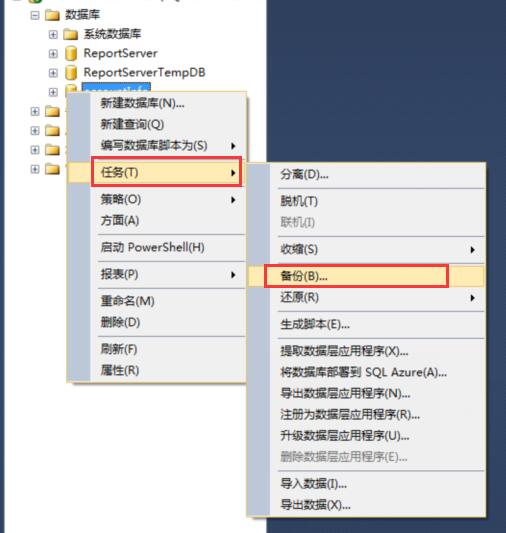 1、選擇要備份的數(shù)據(jù)庫“accountInfo”,點擊鼠標右鍵 → 任務 → 備份