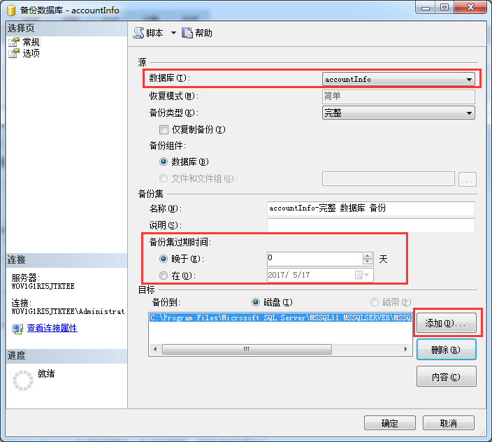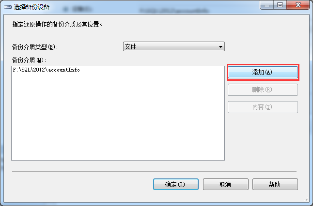 2、在打開的“備份數(shù)據(jù)庫 —accountInfo”對話框中,先點擊刪除,然后點擊“添加”