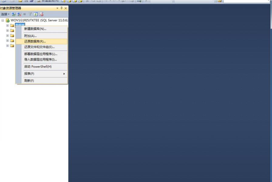 1、在對象資源管理器中右鍵單擊【數(shù)據(jù)庫】-【還原數(shù)據(jù)庫】