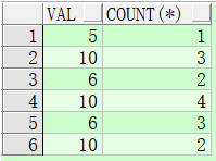 SELECTval,COUNT(*)FROM(SELECTID,val,row_number() OVER(ORDERBYID)-row_number() OVER(PARTITIONBYvalORDERBYID) xFROMLCY )GROUPBYval,xORDERBYMIN(ID);