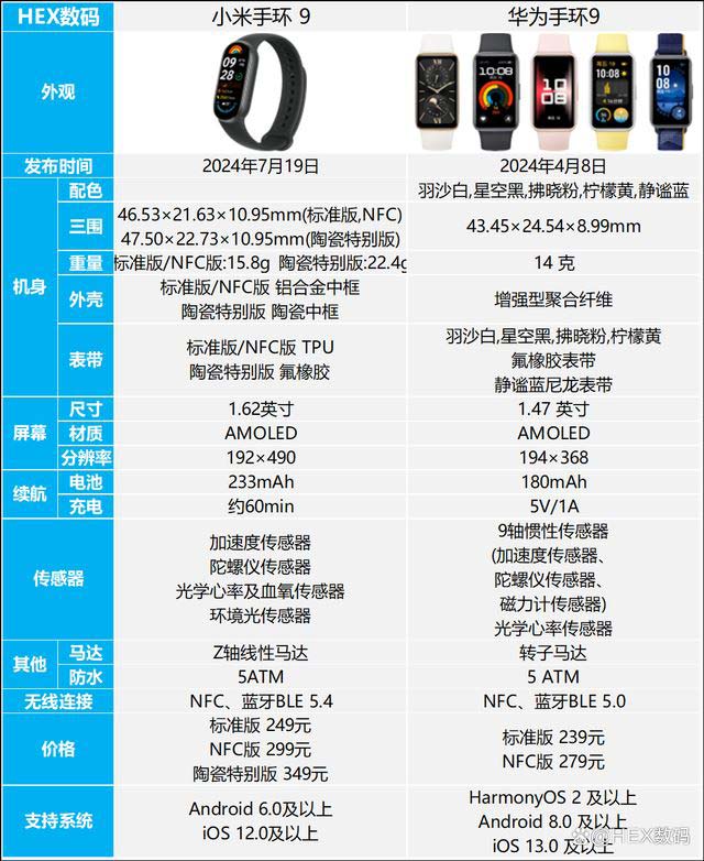 小米手環9和華為手環9區別對比,怎么選?
