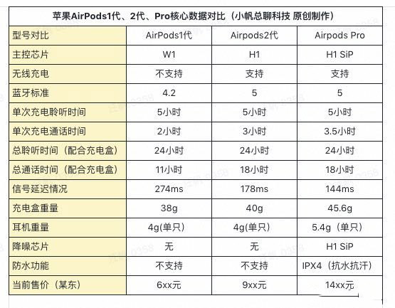 信號延遲(越小越好):airpods1代 274ms、airpods2代 178ms、airpods pro 144ms