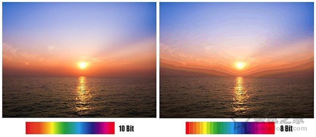 通常Bit只會影響到色彩過渡的時候平滑程度,與色域顯示并沒有多大關系,如上圖所示,是不是感覺10Bit在色彩過渡更加平滑均勻?可能有點夸張,只是更好的讓大家去理解。