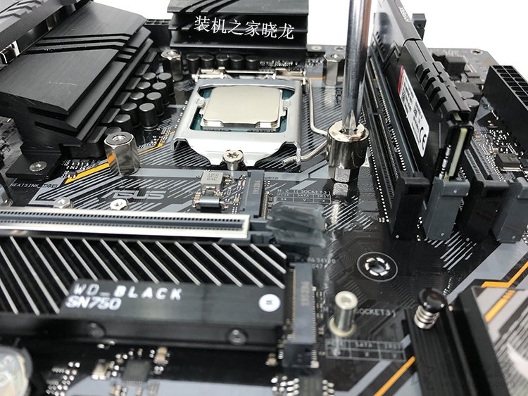 5、我們找到固定背板的四個六邊形螺絲,先用手逐個擰上去,然后我們散熱器盒裝附送的“套筒”套在六邊形螺絲上,使用十字起子將四個六邊形螺絲擰緊。