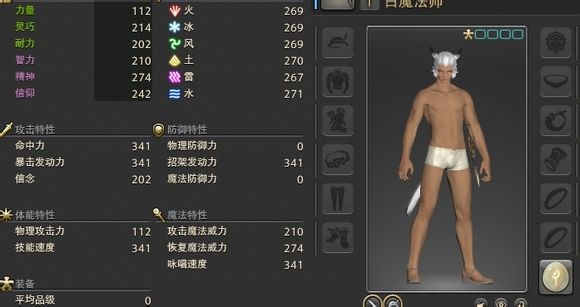 圖中可以看到,果體貓人50白魔有273點精神,換句話說首飾給我們提供的精神量只占總精神的13%。