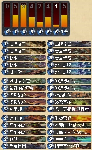 3、順劈斬:這個一開始是為了戰士永遠的噩夢(獅子),不過后來漸漸發現了打獵人的地胡開局,就是對面硬幣跳雙送葬的時候送他上天。不過后來我也發現,還能有效的打擊納克薩瑪斯的德魯伊,以及一些補刀。怎么說呢,屬于可選牌,根據天梯環境隨時更換。