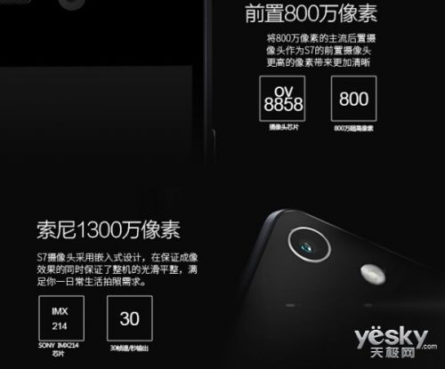 金立ELIFE S7采用了800萬像素前置鏡頭+后置1300萬像素鏡頭的組合,主攝像頭搭載SONYIMX214傳感器,保證了優秀的成像效果。金立為ELIFE S7的全新打造的“Image+影像系統”,一方面在拍照界面上做了輕快化,及增加功能應用豐富化程度。另一方面,用戶可以通過極致硬件和不斷豐富、可任意卸載安裝的特效拍照功能插件,自定義屬于自己的專屬相機。
