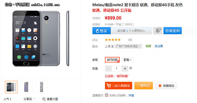 當當網購買魅藍Note2現貨價格是899元,可以獲得魅族Note2 16G手機一臺,比原價799元多出了100元,但是能現貨購買,100元的價格還是可以接受的,畢竟現在魅藍Note2產能并不多,黃牛價一般都要加150元到200元,當當網作為大電商網站加100元購買還是比較有保障。
