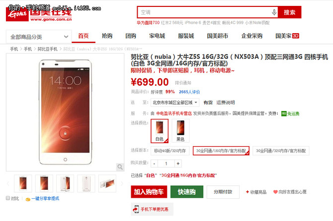 努比亞去年經典的旗艦機Z5S從當初的1999元暴跌至現在的699元。他憑借5寸1080P的視網膜級別屏幕、2GB RAM+16GB ROM、1300W像素主攝像頭等豪華硬件配置成為了小米3的勁敵。雖然目前該機器已經停產,不過目前國美商城中還有一些尾貨正在出售,不過699元的價格并且擁有3G全網通特性確實性價比十足,此外下單還送移動電源、手機貼膜和耳機。整體來說足以秒殺目前市場上的所有千元機了。
