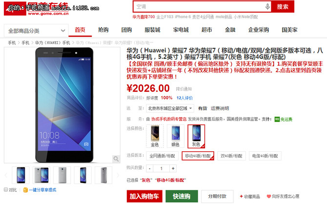 榮耀作為一個從華為獨立出來的互聯網品牌,主攻線上渠道,榮耀7同樣也是采用了線上預約搶購的銷售方式。不過由于供貨不足,如果是想盡快購買到該機的話,只能通過加價的方式入手,目前加價不足三十元的現貨價格已經是榮耀7開賣以來的歷史最低價,相比于不靠譜的手速,目前小幅加價的現貨較為超值,比較適合喜愛早買早享受的朋友。