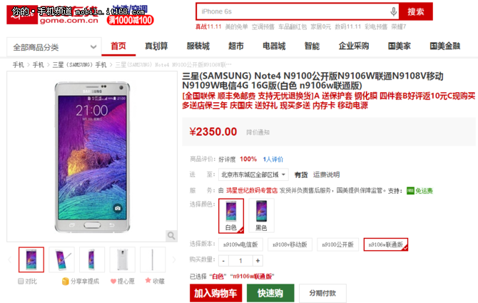 三星最新大屏旗艦Note5已經開始熱賣,而上一代機皇三星Note4的價格也一路暴跌,目前的最低價格僅為2350元,比上市初期的價格便宜一半有余。而且該價格相比京東也優惠三百余元,基本是全網最低了。...