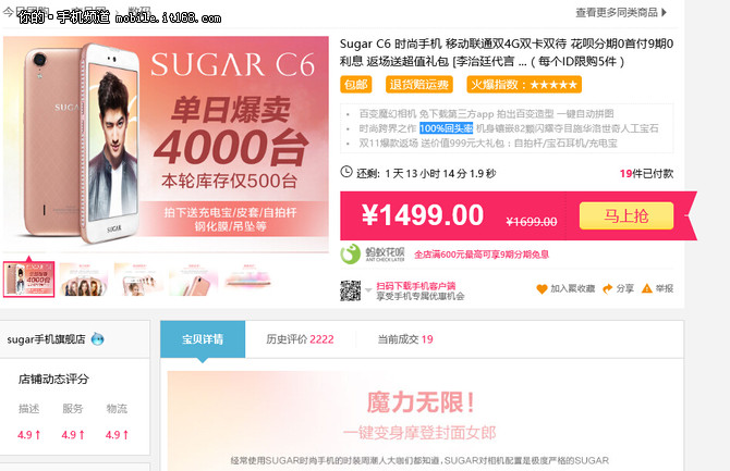 ▲100%回頭率時尚手機 Sugar C6售1499元