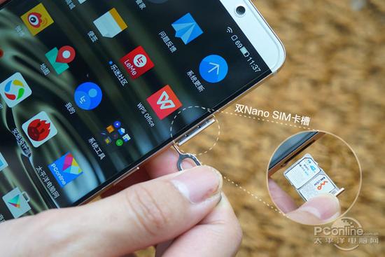 手機SIM卡槽方面,樂Max Pro采用了單卡托雙Nano SIM卡槽的設計,并不支持內存卡拓展。網絡制式方面,兩個卡槽均支持全網通網絡制式。此外,得益于高通820的基帶優勢,電信+移動(聯通)搭配的用戶也可以任意切換使用4G網絡。