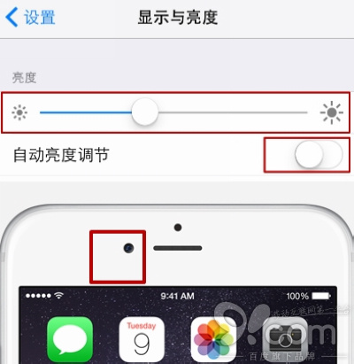 然后先關上“自動亮度調(diào)節(jié)”按鈕,把亮度條滑塊拖到最左,接著拿深色紙片/卡片/隨便什么東西擋住聽筒旁邊的感光器(實測手指的遮光效果不佳);擋好后再打開自動調(diào)節(jié)按鈕,大概過一秒的樣子亮度條滑塊就會自己向右移動了,屏幕也隨之變亮。這就說明你的iPhone的光線感應功能沒有問題,不需要為此憂心了!