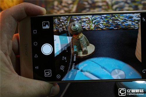 接著來體驗拍照方面。拍照是榮耀V8的一個最大亮點,而發布會邀請函也好,發布會現場布置也好,也都在雙攝像頭的模樣ID設計上下足了功夫,處處體現出了 雙攝的元素,很是用心。在硬件方便,三個版本的榮耀V8在攝像頭上都沒有區別,采用了雙1200萬像素平行鏡頭:第二代雙攝像頭技術,普通拍照性能提升 36%。這兩顆攝像頭其實并不完全雷同,而是采用了黑白彩色雙傳感器、雙ISP(圖像處理芯片),足以能帶來2倍的進光量與感光面積,從而讓照片細節更清 晰,色彩更逼真。我在晚上的路邊體驗了一下,在周圍光線比較暗的情況下,用榮耀V8也能實現快速對焦,而且暗光下的成像能力和出片率也大大高于其他智能手 機。