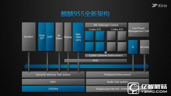 榮耀V8在處理器方面選擇華為最新的麒麟955八核芯片,基于領(lǐng)先的16nm FinFET plus工藝,包括4顆Cortex A72(2.5GHz)核心和4顆Cortex A53(1.8GHz)核心,并且還配備智能感知處理器i5,可以與大核A72、小核A53協(xié)同共享資源,由主系統(tǒng)進行智能調(diào)度,GPU依然是Mali-T880 MP4,另外還支持LTE Cat6以及VoLTE高清語音通話功能。