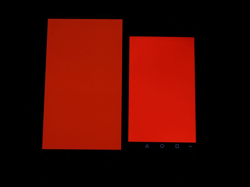 在選擇智能手機(jī)的時(shí)候,絕大多數(shù)的網(wǎng)友都會(huì)在意手機(jī)的屏幕顯示效果,顯示效果更好的手機(jī)更容易受到用戶(hù)的青睞。屏幕是人眼直接面對(duì)的第一元素,對(duì)于色彩的還原能力是否優(yōu)良很大程度上決定了用戶(hù)的購(gòu)機(jī)傾向。眾所周知當(dāng)年蘋(píng)果用視網(wǎng)膜概念橫掃手機(jī)行業(yè),按照蘋(píng)果的理解,像素密度達(dá)到300以上即可成為視網(wǎng)膜屏幕。像素密度ppi越高,畫(huà)面的細(xì)節(jié)就越豐富。OPPO R9 Plus 像素密度為367ppi,華為P9為424ppi,都已經(jīng)突破了蘋(píng)果所說(shuō)的300ppi大關(guān),那么人眼到底能不能區(qū)分這兩款手機(jī)的區(qū)別?我們將以三原色的還原能力來(lái)分辨兩款產(chǎn)品的區(qū)別。以下圖片均是在完全黑暗的暗室環(huán)境中,通過(guò)專(zhuān)業(yè)單反數(shù)碼相機(jī)進(jìn)行抓拍,并以桌面液晶顯示器的真實(shí)圖像作為參照標(biāo)準(zhǔn),用以主觀對(duì)比兩款手機(jī)的屏幕情況。其中作為OPPO R9 Plus(AMOLED),右為華為P9。