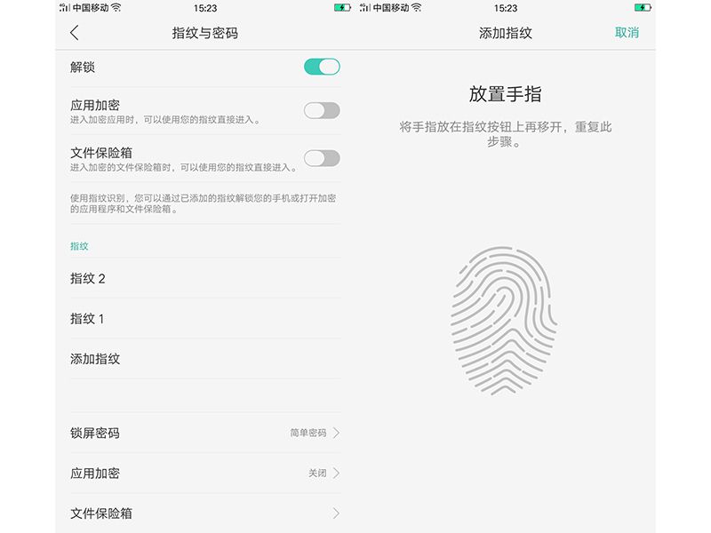 雖然時(shí)下指紋識(shí)別還不能脫離傳統(tǒng)密碼而存在,但是其帶來(lái)的便利性還是毋庸置疑的。OPPO R9 Plus采用了前置指紋識(shí)別設(shè)計(jì),P9采用了業(yè)界更常見(jiàn)的后置指紋識(shí)別。本階段評(píng)測(cè)的重點(diǎn)將不再是指紋解鎖速度——經(jīng)實(shí)測(cè)發(fā)現(xiàn),兩者的指紋解鎖速度都非常快,難以區(qū)別。那么我們將主要從指紋的應(yīng)用場(chǎng)景來(lái)判斷,哪種指紋模式才是旗艦機(jī)的水準(zhǔn)。