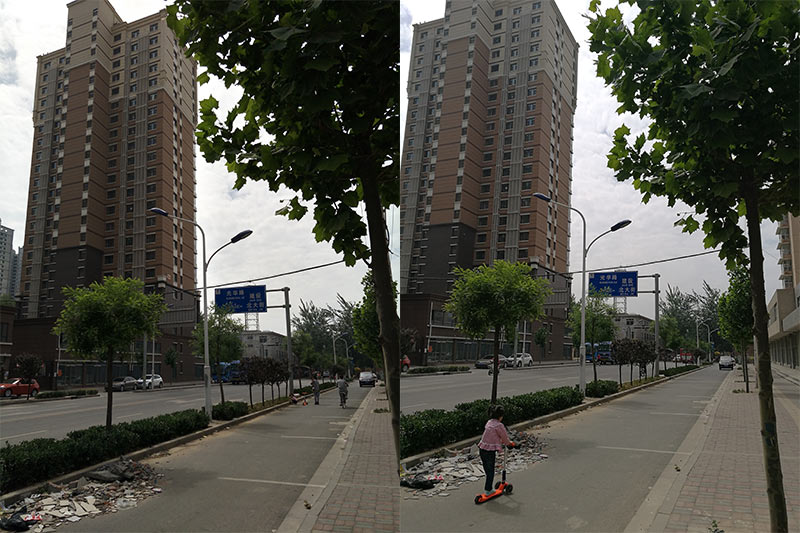 OPPO無(wú)疑包含了更多的細(xì)節(jié),主要得益于其1600萬(wàn)像素的規(guī)格。從地上的樹(shù)木陰影也可以看出OPPO相機(jī)對(duì)于明暗的把握非常出色。