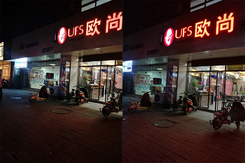 華為P9雖然支持超級(jí)夜景模式,但表現(xiàn)效果一般,拉高ISO保留曝光能夠提升畫(huà)質(zhì)以及層次感,但相應(yīng)的噪點(diǎn)也就越多,不如OPPO的作品更加真實(shí)。