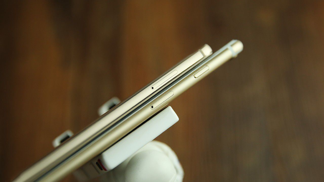通過兩側及四周的對比我們可以看到,榮耀V8的整體設計語言還是圍繞著切邊加高光金屬倒角來進行的,相較于iPhone6s Plus整體圓潤和一體化的感覺,榮耀V8顯得有點兒差距了...另外按鍵的反饋和開槽的緊密度相對于iPhone6s Plus來說都有一點點差距,雖然不是很大,不過仍需進步啊。