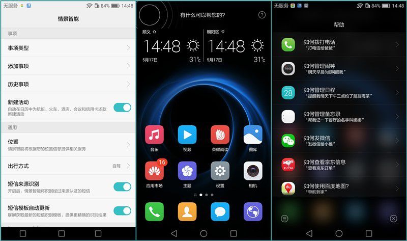 情景智能這一功能也是比iPhone6s Plus強的好用特色,不但可以自動在日歷中為航班、火車和酒店等新建活動,還可以在指定位置來提醒相關事項,這個比iPhone不接地氣的提醒事項要強一些哦。