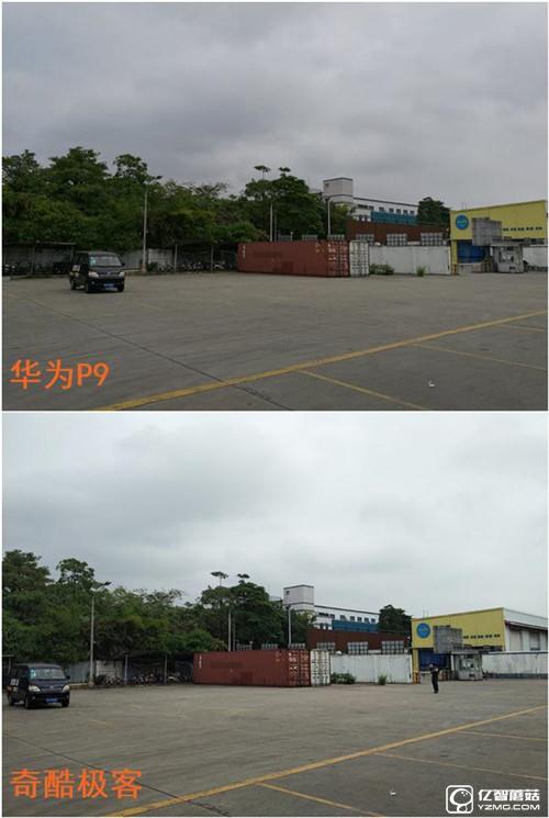 未開啟HDR拍攝時(shí),華為P9的畫面亮度稍暗,不過天空處的細(xì)節(jié)保留得更多,奇酷極客的顏色要鮮艷一些,肉眼觀感更好。