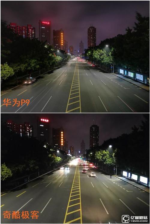 華為P9的超級夜景模式下會(huì)拉長曝光時(shí)間,同時(shí)將ISO壓在一個(gè)比較低的數(shù)值上,最后再進(jìn)行算法合成,不僅提升暗部色彩與細(xì)節(jié)、同時(shí)保證高光處不會(huì)過曝。奇酷極客則是用1/15s的快門和接近1000的ISO去提升畫面亮度。華為的超級夜景需要三角架才能拍好,效果令人滿意。奇酷旗艦則是只需手不抖就能拍,實(shí)用性更強(qiáng)。