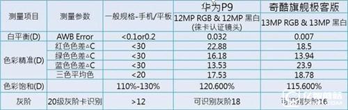 根據(jù)實(shí)驗(yàn)室的數(shù)據(jù),華為P9的白平衡偏離值為0.032、紅綠藍(lán)色差中紅色色差數(shù)值最大,奇酷旗艦極客版的數(shù)據(jù)則是0.007,三色中偏藍(lán)。雖說兩者數(shù)據(jù)都在可以接受的范圍內(nèi),特定情況下拍出來還是有明顯區(qū)別的。