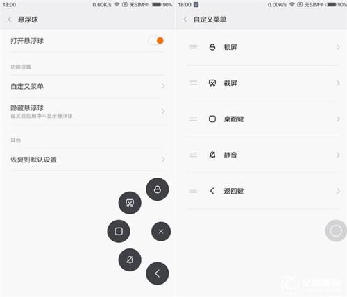 從MIUIV6時代推出的單手操作模式一直沿用至今,當然在小米Max上體現會更好,只要你的手能夠摸到小米Max底部的三個按鈕,只要從左到右滑動就可以進入右側的單手模式界面;從右滑到左邊則可以快速進入左側的單手模式。這時候屏幕就會維持在3.5-4.5英寸之間,單手操作就更容易。在一個,小米Max內置了懸浮球,一個動作就可以做五種操作(默認為鎖屏、截屏、返回桌面、靜音、返回鍵)