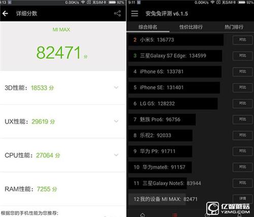 小米Max采用驍龍652/650處理器(1499元版本),輔以3GB/4GB運行內存(1999元版本)運行,在容量上有32GB/64GB/128GB存儲空間可選。這次測試的驍龍652處理器,一起看看跑分如何。