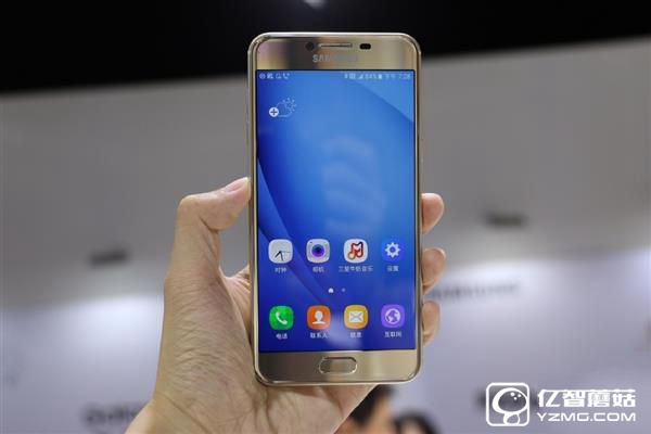 配置方面,Galaxy C5采用驍龍617處理器,搭載5.2英寸1080p顯示屏,內置4GB內存和32/64GB機身存儲空間,提供一顆800萬像素前置攝像頭和一顆1600萬像素后置攝像頭,電池容量2600mAh。