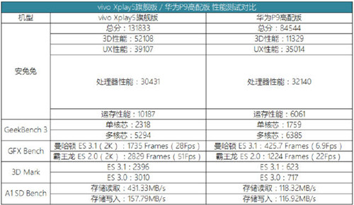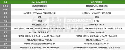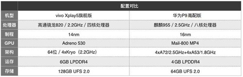 vivo Xplay5旗艦版和華為P9參數配置對比評測