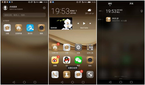 可能是兩款手機所定位的人群風格不同,所以從系統的設計語言上看,Funtouch OS更偏向于年輕活潑,EMUI則有著系統一貫的華貴金屬風格。除此之外,在系統的細節部分,如快捷開關和多工任務欄的位置,兩款系統也有著不同的排列布局,EMUI將通知以時間軸的方式展示,快捷開關頁和多工任務欄則被獨立出來。Funtouch OS則在欄目上作出了整合,下拉通知欄只作通知顯示,快捷開關和多工任務欄則被整合進上推欄目內。