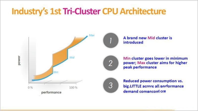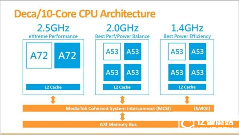 從制程工藝來看,Helio X20 采用的20nm HKMG技術(shù)并不能和已經(jīng)漸成主流的16nm FinFET技術(shù)工藝相比,但其采用的Tri-Cluster處理器架構(gòu)帶來大量優(yōu)勢。Tri-Cluster架構(gòu)主要分為三個部分,第一個部分由兩顆ARM Cortex-A72所組成的單架構(gòu)(以2.3GHz工作頻率運作,提供極致性能),第二、第三個部分分別含四顆ARM Cortex-A53的架構(gòu)(其中一個架構(gòu)負責(zé)中等負載任務(wù),以2.0GHz頻率運作;另一個則負責(zé)執(zhí)行輕度負載任務(wù),以1.4GHz頻率運作),可以良好解決移動設(shè)備面對各種高度、中度以及輕度負載工作項目時的性能功耗平衡。