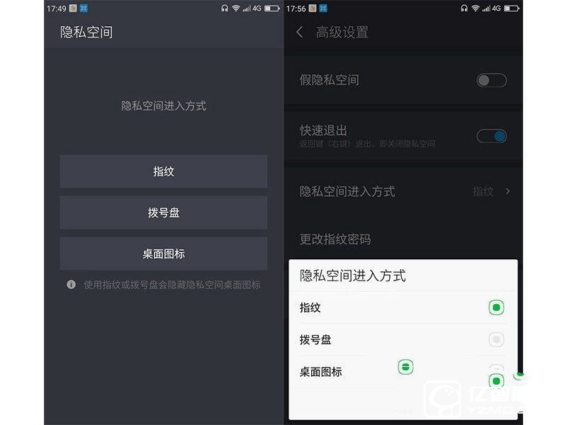 第一,如果你設(shè)置為指紋進入,那么在桌面上將不會有隱私空間應(yīng)用標志,只有通過設(shè)置的指紋進入,而且該指紋不能和解鎖指紋一樣;第二,你可以為隱私空間設(shè)置復(fù)雜密碼——而不僅僅是用數(shù)字的簡單組合,大大增加了被暴力破解的難度;第三,該機還可以設(shè)置假隱私空間,依然可以通過不同的指紋或者密碼進入,同樣可以起到保護隱私的作用——如果比喻的話,這種真假隱私空間有點類似曹操的“疑冢”,如果有人想通過你的手機獲得隱私信息簡直比登天還難。