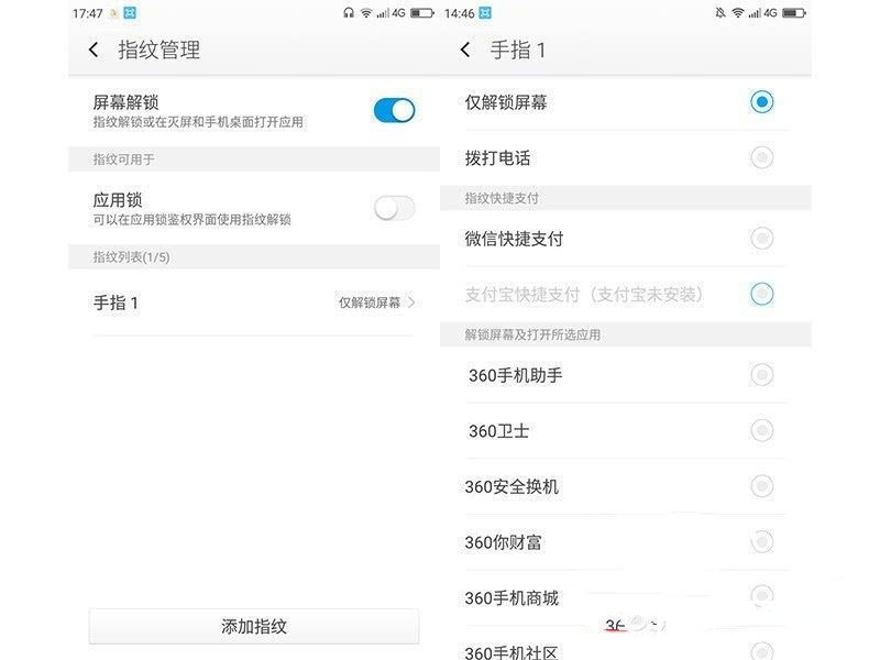 360手機N4的指紋設(shè)置界面十分簡單,用戶可以實現(xiàn)指紋拍照、錄音、接聽電話功能,而開啟隱私空間等指紋操作需要在對應(yīng)app進行設(shè)置。