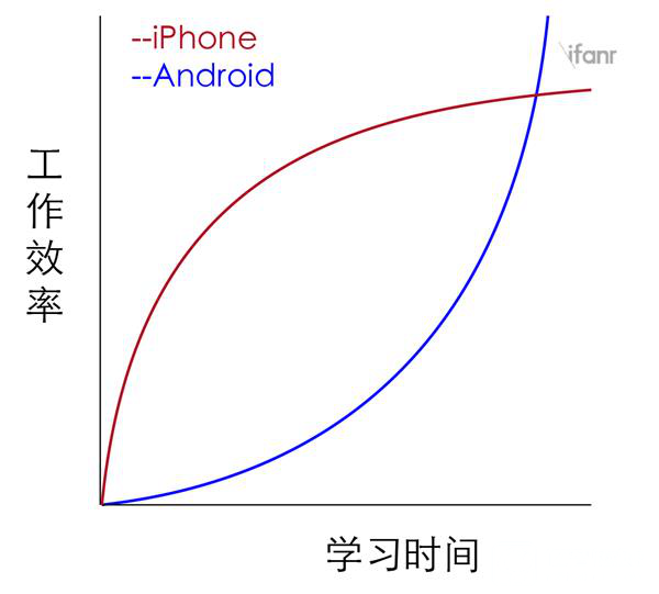 易學、易用,兩者并沒有優劣之分,而只有輕重權衡的關系。事實上,iPhone重視“可學習性”多于“效率”,初段能快速上手,但相比之下,不愿犧牲效率來達成“可學習性”的Android,其用戶在熟練后的操作效率,可能會比iPhone要高(上圖)。
