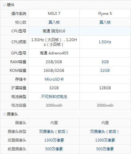 紅米3s和魅藍(lán)3s配置參數(shù)詳細(xì)對(duì)比: