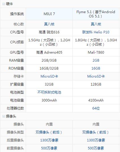 紅米3s和魅藍(lán)note3配置參數(shù)詳細(xì)對比: