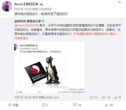 最近,IHS Technology中國研究總監王陽在微博上對該處理器名稱進行更正,稱其并不是驍龍823,其真正的名字應該是驍龍821,鑒于王陽的言論可信度極高,這款處理器基本被證實。
